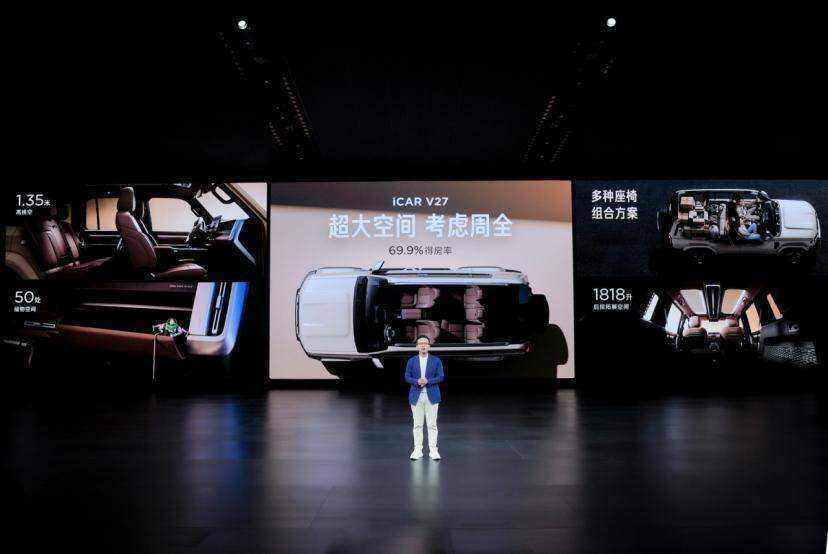 iCAR品牌事业部总经理苏峻博士在发布会上明确了产品定位:“打造 iCAR V27 的原点是‘父母的大玩具,孩子的游乐场’。” 这款车型以 “六大标杆” 实力 —— 高颜值大空间、标杆增程性能、标杆公路操控、标杆泛越野实力、标杆智能辅助驾驶和标杆生态,实现个性驾趣与家庭实用的双重满足,精准契合先锋家庭与户外爱好者的全场景需求。